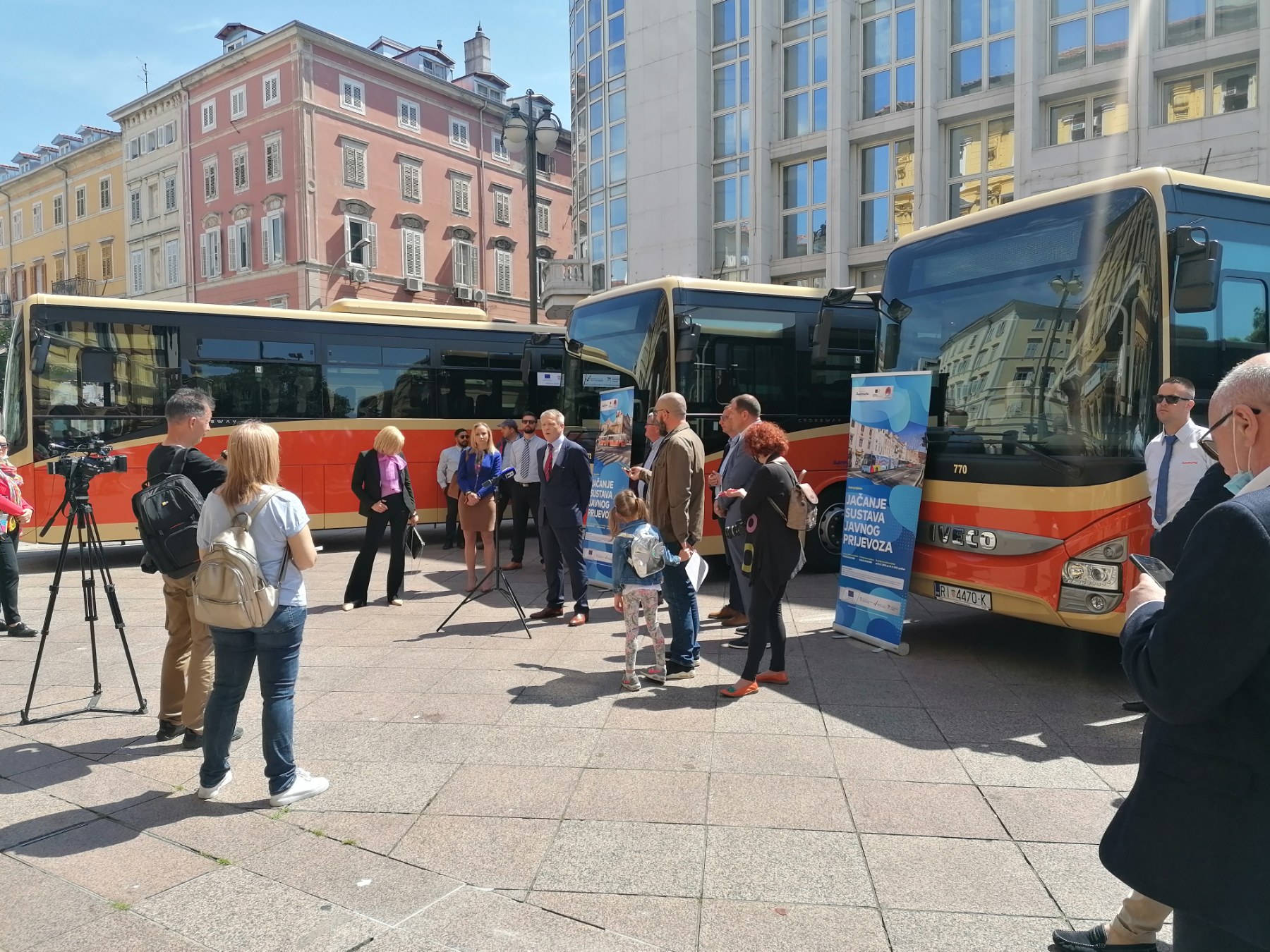 U utorak, 11. svibnja 2021. godine, predstavljeno je posljednjih 5 od ukupno 32 nova autobusa KD Autotrolej nabavljenih u sklopu projekta “Jačanje sustava javnog prijevoza” za koji su sredstva osigurana putem mehanizma Integriranih teritorijalnih ulaganja (ITU) u sklopu Urbane aglomeracije Rijeka. Riječ je o dizel autobusima Iveco Crossway Line čija vrijednost iznosi 8.165.625,00 kn s PDV-om. Autobusi su prigradskog tipa, a raspolažu sa 73 mjesta, od čega je 49 sjedećih. Podsjetimo, sredinom veljače ove godine predstavljeno je 7 zglobnih niskopodnih autobusa gradskog tipa marke MAN Lions City G, kapaciteta 143 putnika i ukupne vrijednosti gotovo 22 milijuna kuna. Potom je u ožujku u promet pušteno 10 novih dizel minibus vozila Otokar Navigo c, koji imaju kapacitet 47 putnika i raspolažu s 21 sjedećim mjestom, a koriste se na gradskim i županijskim linijama koje imaju manji broj putnika. Ukupna vrijednost 10 dizel minibus vozila iznosi malo više od 10 milijuna kuna. Krajem travnja je u promet pušteno 10 novih solo autobusa kao pogonsko gorivo koriste stlačeni prirodni plin (SPP). Riječ je o vozilima Crossway Low entry Iveco, gradsko-prigradskog tipa, kapaciteta 76 putnika, ukupne vrijednosti 21.009.375,00 kuna s PDV-om. Ciljevi EU projekta „Jačanje sustava javnog prijevoza“ su unaprjeđenje kapaciteta i povećanje brzine putovanja, smanjenje operativnih troškova, unaprjeđenje pouzdanosti i sigurnosti prometa, smanjenje emisije štetnih plinova i zagađenja zraka, povećanje broja putnika u javnom prijevozu u odnosu na osobna vozila te prilagođavanje EU standardima uvođenje modernih sustava obavješćivanja putnika. Sredstva za projekt „Jačanje sustava javnog prijevoza“ osigurana su iz Kohezijskog fonda putem Operativnog programa Konkurentnost i kohezija putem mehanizma Integriranih teritorijalnih ulaganja (ITU mehanizam) za Urbanu aglomeraciju Rijeka. Ukupna vrijednost projekta je 81 milijun kuna, od čega odobrena EU bespovratna sredstva iznose 54.5 milijuna kuna.
