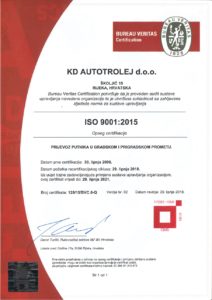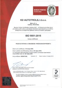 U lipnju 2018. godine uspješno je provedena recertifikacija sustava s rokom važenja certifikata do lipnja 2021. godine. Tranzicijom na novu normu ISO 9001:2015 ispunjen je jedan od zadataka za poboljšanje djelotvornosti sustava upravljanja kvalitetom.