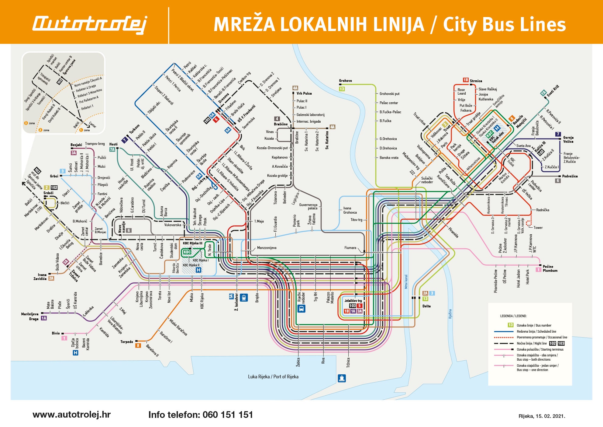 City (local) transport is carried out in the area of the city of Rijeka on 18 routes. The routes cover the entire city area